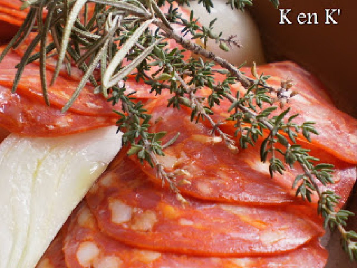 Dos de cabillaud aux écailles de chorizo Platfacile30 min Envoyer cette recette à un ami Imprimer cette page Poser une question à l'auteur Publier votre photo de cette recette Ingrédients 4 4 dos de cabillaud de 150 g chacun 20 tranches de chorizo 1 oignon frais huile d'olive thym romarin
