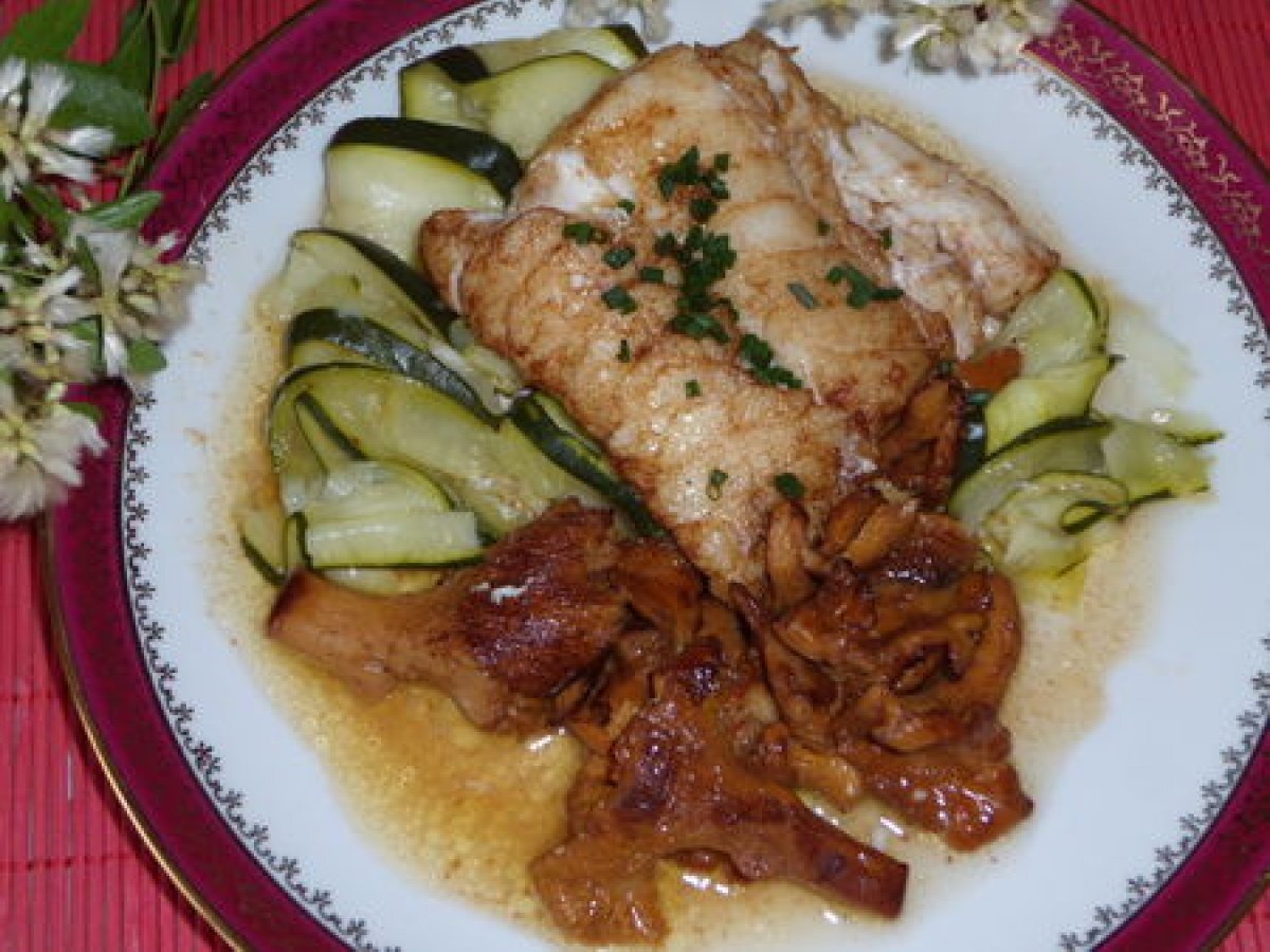 Dos de cabillaud aux girolles votez maintenant Platfacile35 min Envoyer cette recette à un ami Imprimer cette page Poser une question à l'auteur Publier votre photo de cette recette Ingrédients 2 2 dos de cabillaud sans peau de 150 g chacun 300 g de girolles 1 petite courgette 30 g de beurre demi-sel 4 brins de ciboulette fleur de sel poivre
