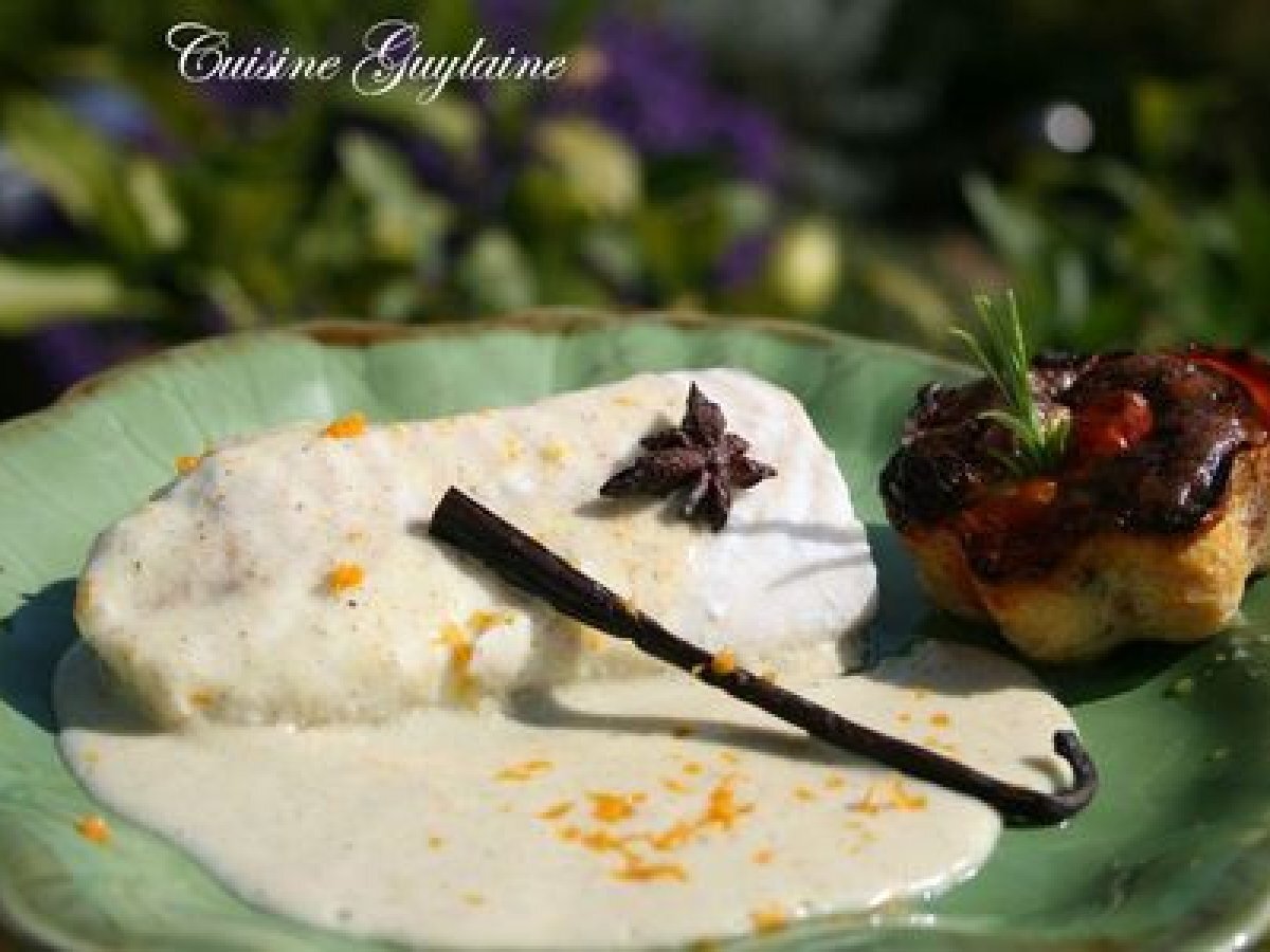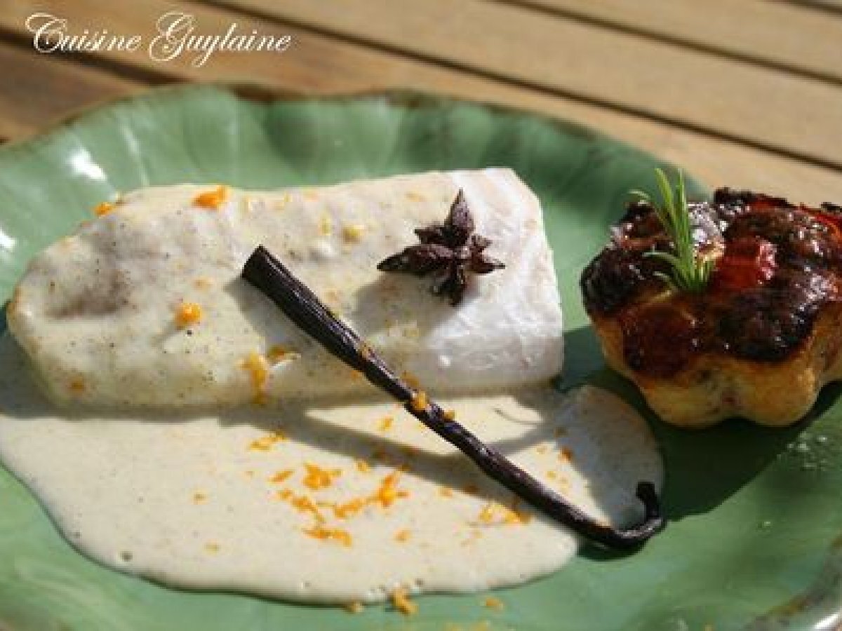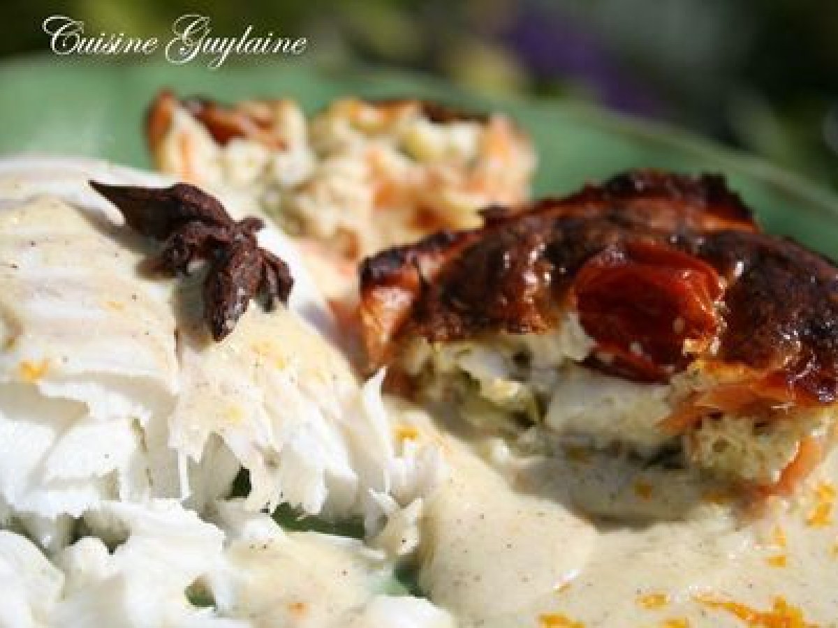 Dos de cabillaud et petits flans de saumon aux courgettes et au chèvre cendré
