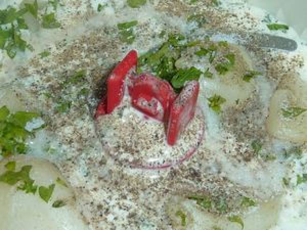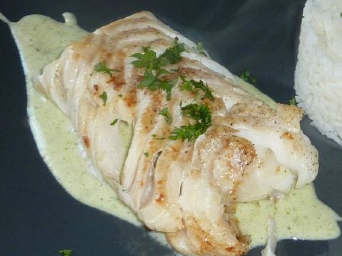 Dos de cabillaud et sa sauce à la crème d'ail et persil