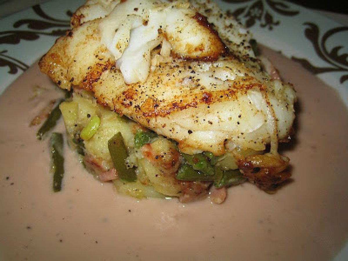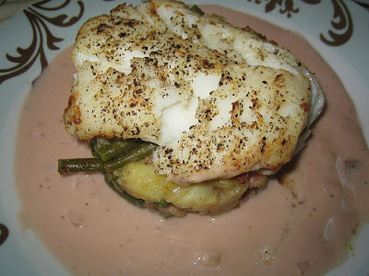Dos de cabillaud façon salade liégeoise, sauce au vinaigre de framboises votez maintenant PrécédentSuivant Platfacile45 min Envoyer cette recette à un ami Imprimer cette page Poser une question à l'auteur Publier votre photo de cette recette Ingrédients 4 4 morceaux de 150 g de cabillaud 8 pommes de terre Charlotte 200 g de lard en dés 200 g de haricots verts extra fins 1 petite échalote hachée 3 dl de crème 1 de de vinaigre de framboises 1 grosse noix de beurre sel et poivre