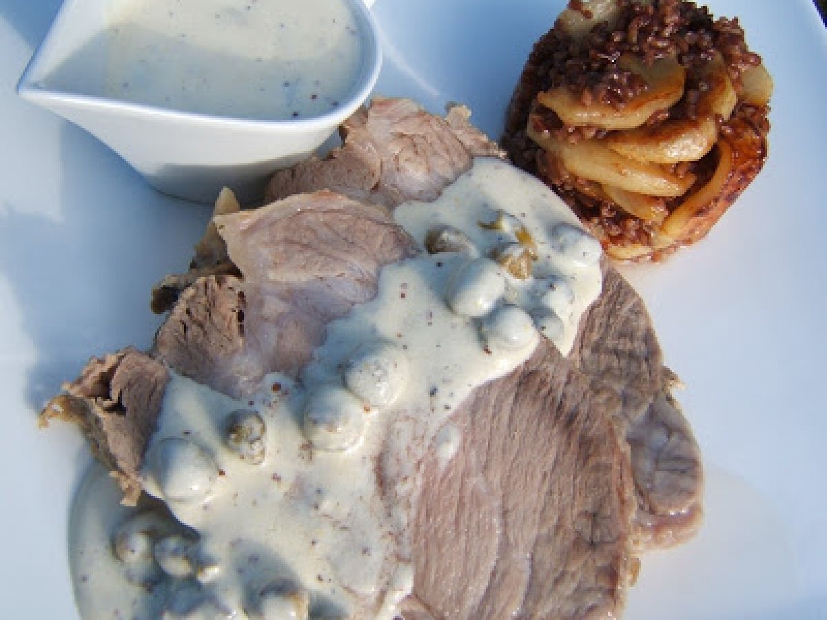 Échine de porc cuite au lait accompagnée de pommes au riz rouge de camargue Platmoyen3 h 20 m Envoyer cette recette à un ami Imprimer cette page Poser une question à l'auteur Publier votre photo de cette recette Ingrédients 6 1 rôti d'échine de porc d' 1.500 kg " échine désossée " 1 litre de lait entier " 1 échalote sarriette et thym 2 cuillères à soupe d'huile d'olive sel et poivre noir du moulin 3 grosses pommes acides 60 g de riz rouge de Camargue par pers 1 cuillère à soupe de sirop de sucre de canne 1 cuillère à soupe d'huile 1 cuillère à soupe d'eau 10 g de beurre sel 5 cuillères à soupe de câpres 50 cl de crème liquide épaisse 1 cuillère à soupe de moutarde à l'ancienne " non forte " sel et poivre noir du moulin