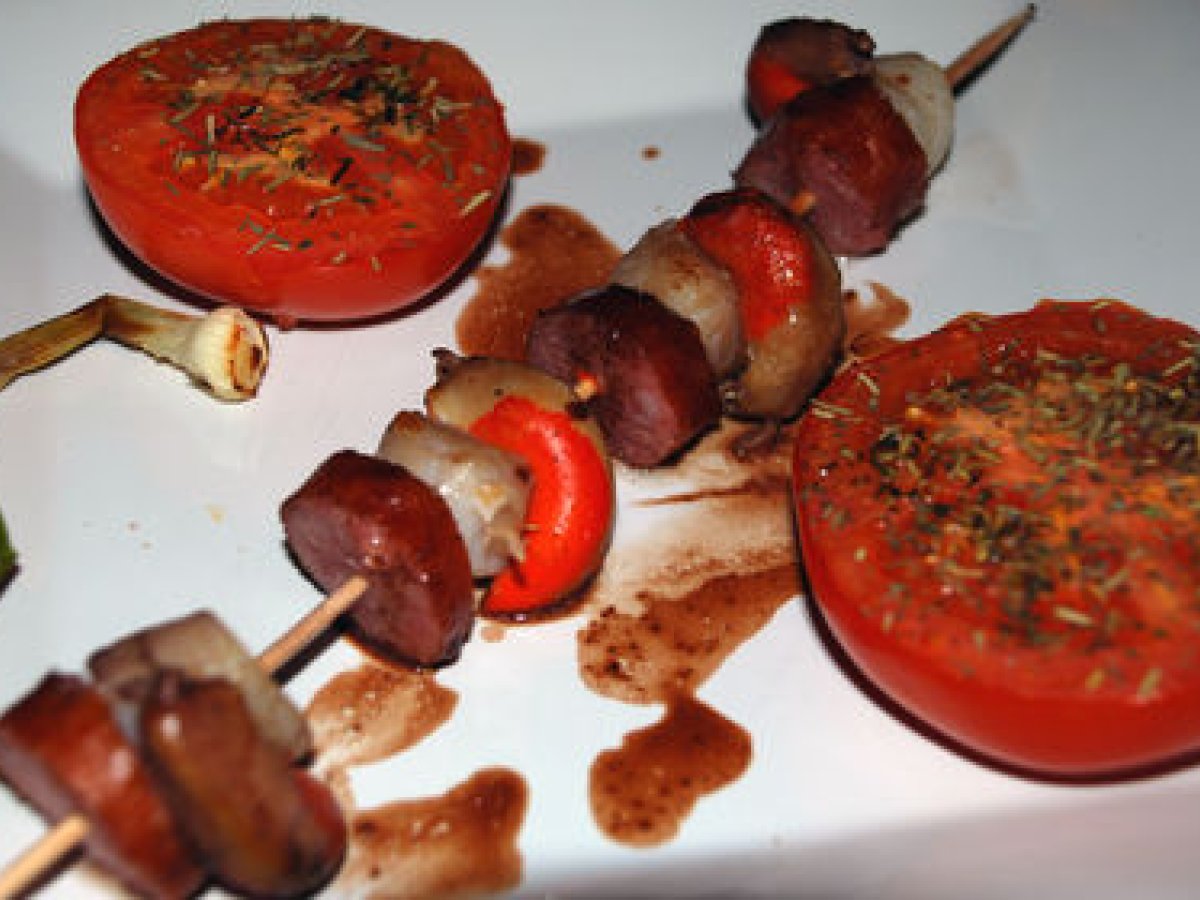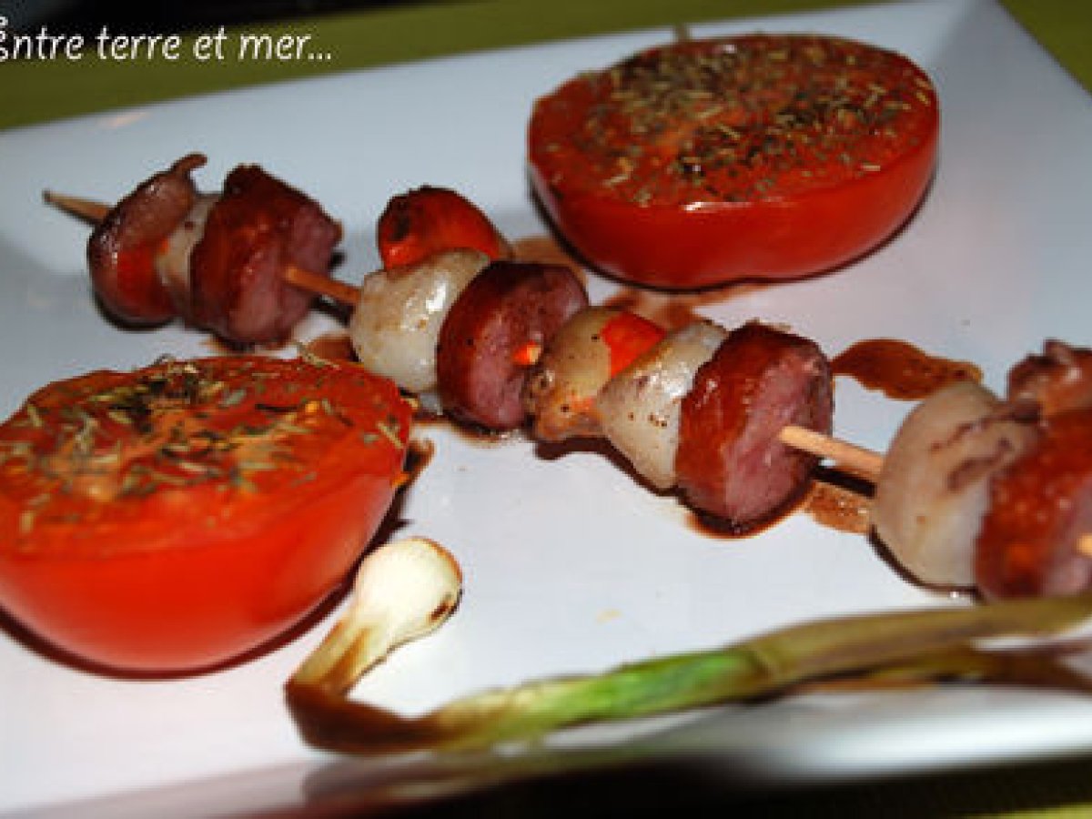Entre terre et mer : brochettes de st-jacques et saucisse fumé, réduction de vin rouge votez maintenant PrécédentSuivant Platfacile10 min Envoyer cette recette à un ami Imprimer cette page Poser une question à l'auteur Publier votre photo de cette recette Ingrédients 2 8 St-Jacques 8 tranches de saucisse fumée coupée en fines tranches piment d'Espelette vin rouge
