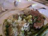 Epaule d’agneau cuite au foin de la crau, légumes de saisons. Platmoyen1 h 20 m Envoyer cette recette à un ami Imprimer cette page Poser une question à l'auteur Publier votre photo de cette recette Ingrédients 4 INGREDIENTS (pour 4 personnes) : 1 épaule d’agneau désossée et roulée Foin de la Crau Légumes de saisons (carottes, courgettes, petits pois, haricots vert …..) Feuilles de verveine Jus d’agneau déshydraté Vinaigre balsamique sel Poivre