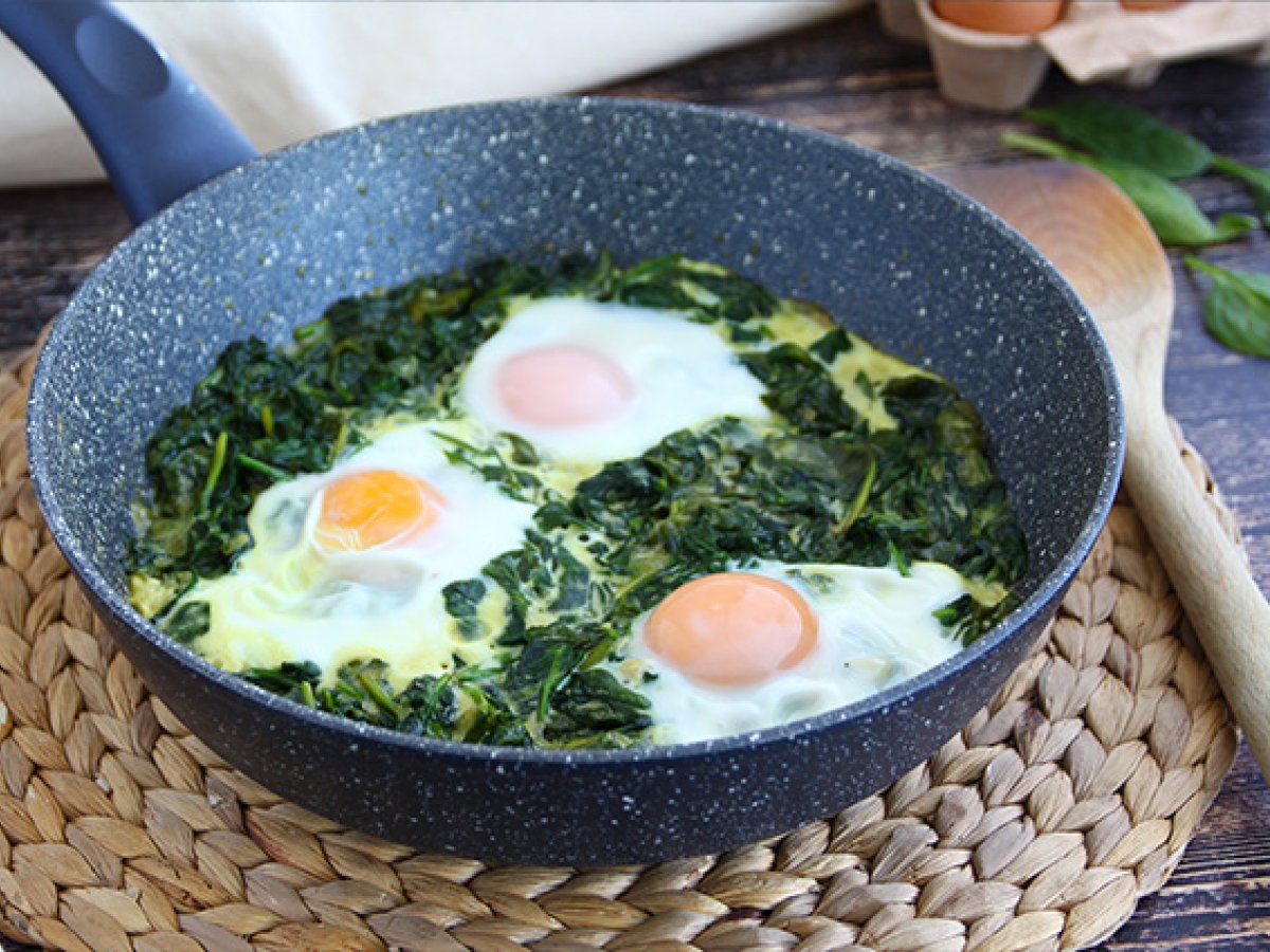 Cuisinez vos épinards à la crème et ajoutez-y des oeufs pour un résultat extra fondant et savoureux :-) Grâce à une cuisson à la poêle recouverte de son couvercle, vous obtiendrez des oeufs au blanc moelleux et au jaune coulant à souhait..! Un vrai délice et une excellente manière de faire manger (découvrir) les épinards aux enfants ! Facile à faire, suivez les étapes de notre recette pas à pas !