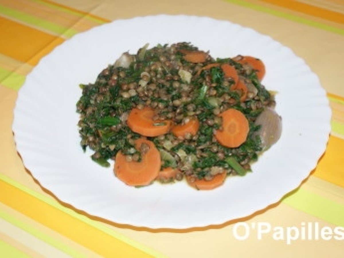 Une délicieuse recette de lentilles aux épinards parfaitement parfumées à l'ail et au poivron.