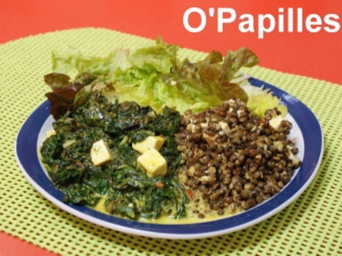 Epinards et lentilles aux épices Platfacile30 min358 Kcal Envoyer cette recette à un ami Imprimer cette page Poser une question à l'auteur Publier votre photo de cette recette Ingrédients 4 750g d'épinards 250g de lentilles 1 oignon 3 gousses d'ail 1 cuillère à soupe d'huile de tournesol 1 cuillère à café de chacune des épices 20cl de crème fraîche liquide dés de fromage de brebis sel et poivre Coût estimé: 3.98Euros€ (1€/part)
