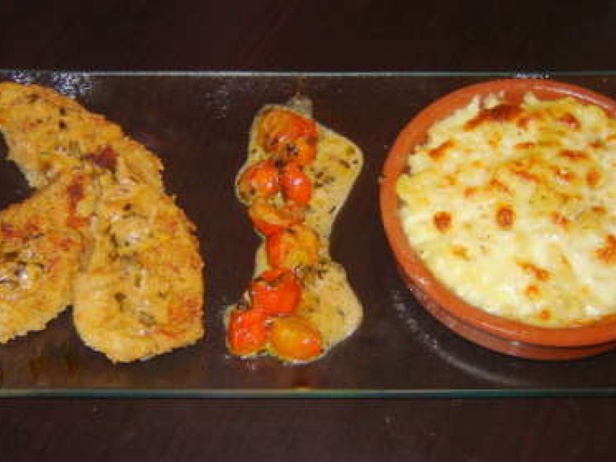 Escalope à la milanaise sauce aux tomate cerise et gratin de pât Platmoyen35 min Envoyer cette recette à un ami Imprimer cette page Poser une question à l'auteur Publier votre photo de cette recette Ingrédients 2 2 escalope de veau 50 gr de farine 50 gr de chapelure 2 oeufs 10 tomates cerises 1 gousse d'ail Huile d'olive Thym Basilique Coquillette 1 boule de mozzarella 1 citron 1 trait de crème liquide