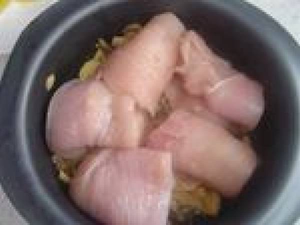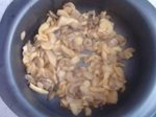 Déposez les champignons au fond de la cocotte et posez les escalopes roulées dessus.