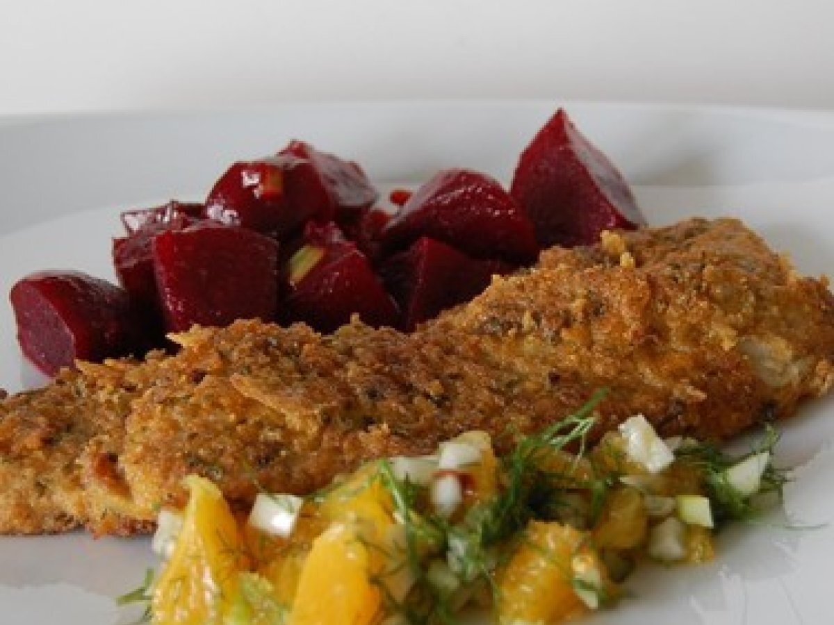 Le betteraves et l'oranges ont toujours fait bon ménage et, servies de cette façon, elles pourraient aussi très bien accompagner un poisson blanc.