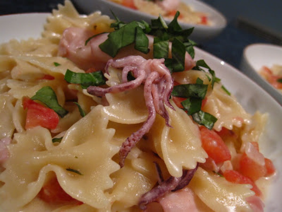 Farfalle aux supions - comme un risotto Platfacile29 min Envoyer cette recette à un ami Imprimer cette page Poser une question à l'auteur Publier votre photo de cette recette Ingrédients 4 350 g de farfalle 600 g de supions 3 tomates (mondées, épépinées et coupées en petits dés) 1 bel oignon doux 1 botte de basilic 2 litres de fumet de poisson 1 verre de vin blanc 100 g de parmesan Sel poivre Huile d'olive