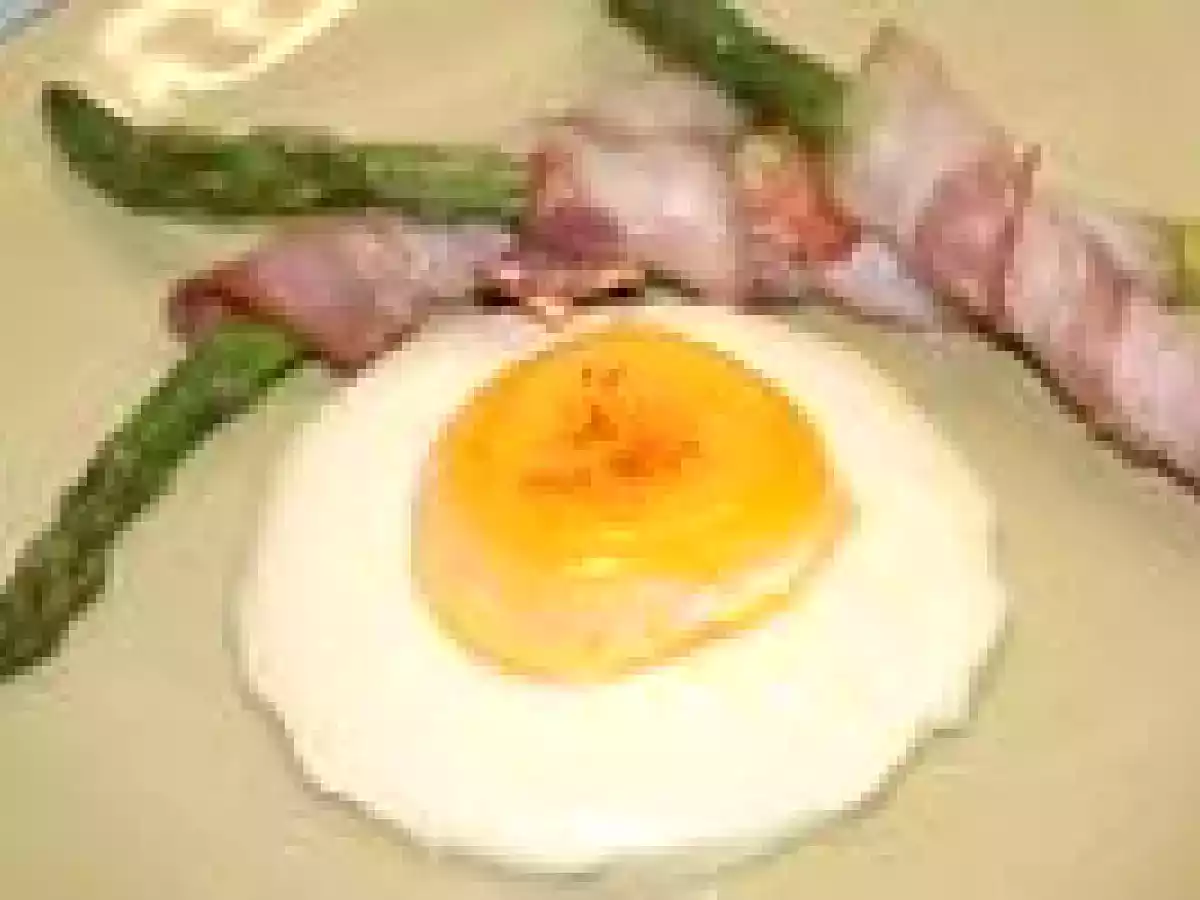 Faux oeuf au plat, mouillettes d'asperges vertes