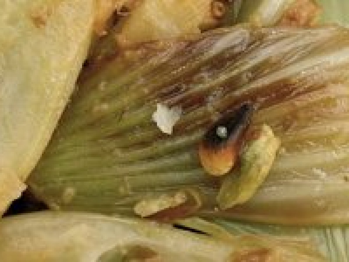- Chauffez l'huile dans la poêle. Quand elle est bien chaude faites-y dorer les fenouils pendant quelques minutes sur chaque face. Réduisez le feu.