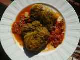Feuilles de chou farcies avec riz viande hachée et mélasse de gr Platmoyen1 h 50 m496 Kcal Envoyer cette recette à un ami Imprimer cette page Poser une question à l'auteur Publier votre photo de cette recette Ingrédients 5 1 chou vert ( pas frisé ) un gros morceau de viande 400 g de viande hachée 200 g de riz 2 cs d'huile d'olive 4 cs de mélasse de grenade ***** 4 gousses d'ail 1 cs de menthe en poudre 2 cc de tomate concentrée 1 cc 4 épices sel et poivre