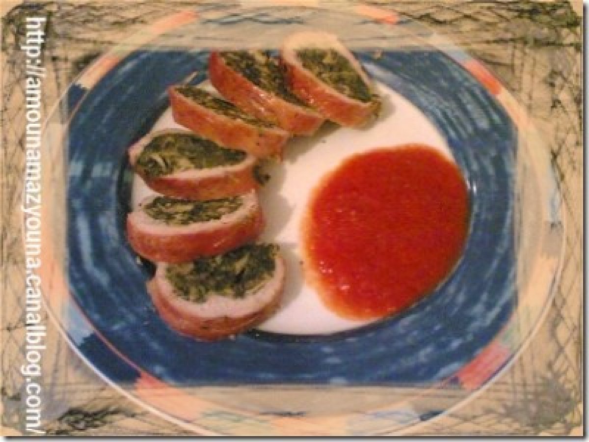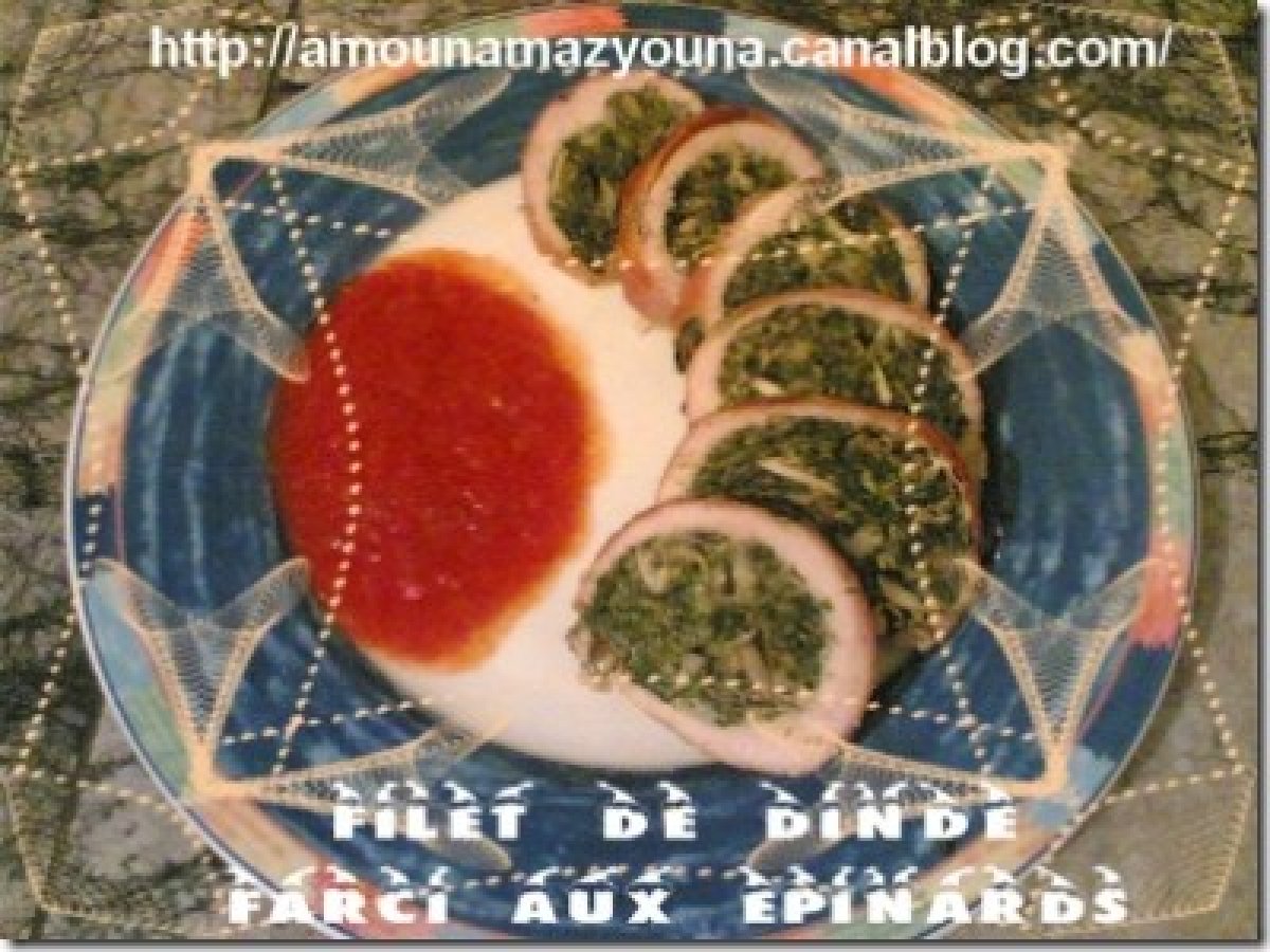 Un dîner léger avec un filet de dinde farci aux épinards accompagnés de la sauce ketchup. Un bon petit plat qui peut être préparé à l'avance. Une recette exotique, originale, pour préparer facilement vos viandes.