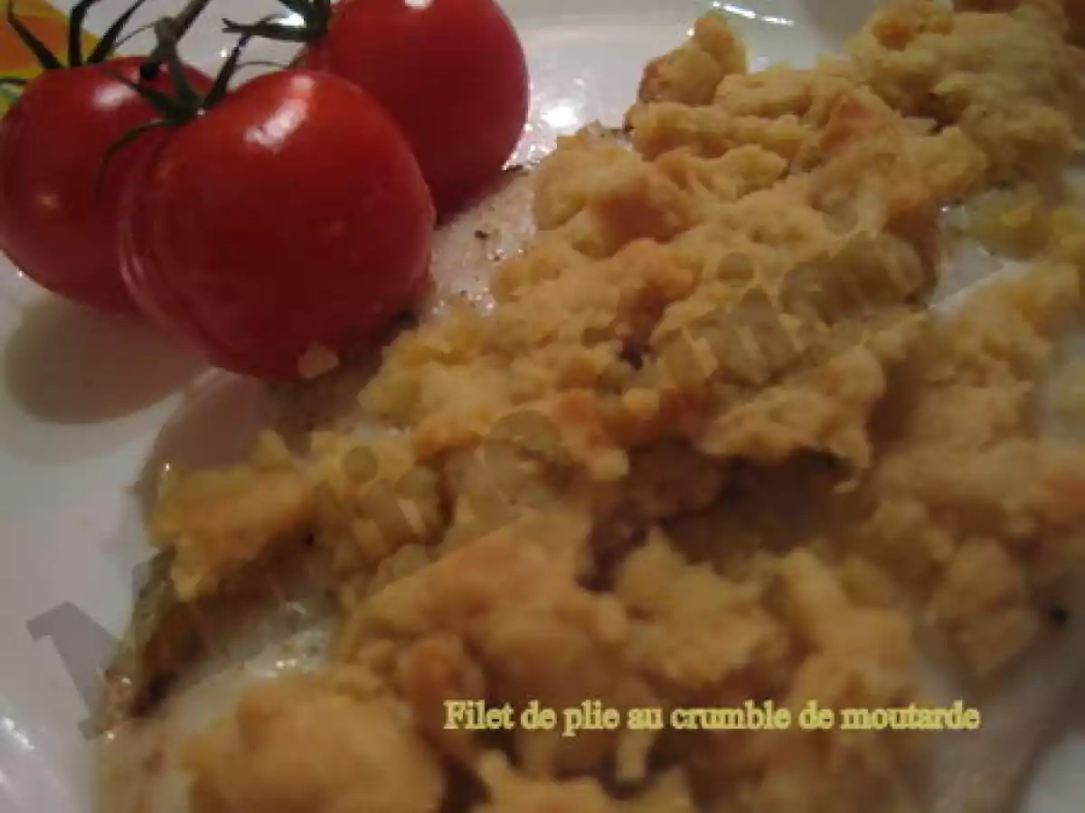 Filet de plie au crumble de moutarde Platfacile30 min213 Kcal Envoyer cette recette à un ami Imprimer cette page Poser une question à l'auteur Publier votre photo de cette recette Ingrédients 4 4 filets de plie 4 cuillères à soupe de farine 4 cuillères à soupe de moutarde de Dijon ou à l'ancienne 2 cuillères à soupe d'huile sel poivre Coût estimé: 7.88Euros€ (1.97€/part)