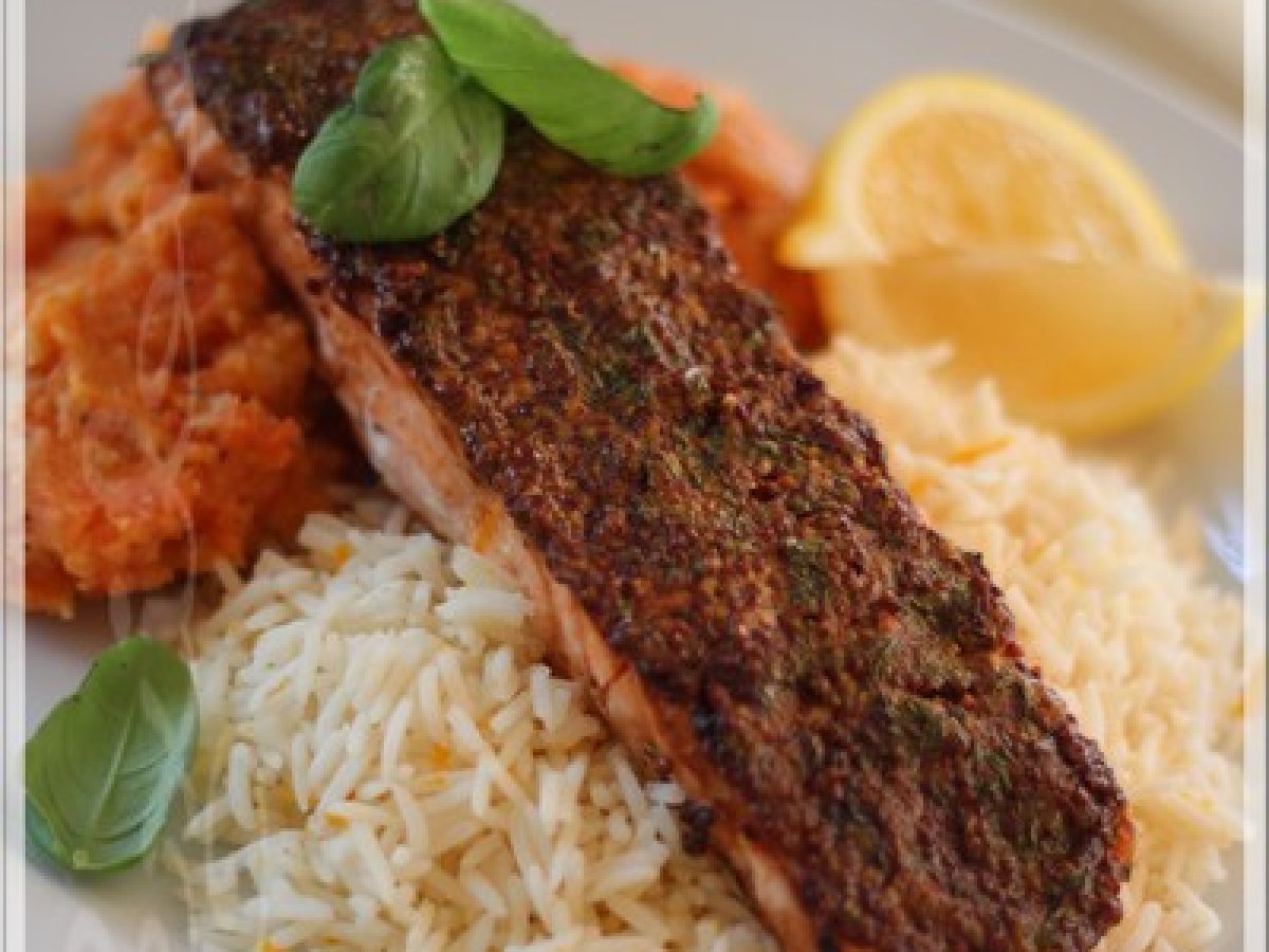 Filet de saumon à la dijonnaise avec purée de carottes et céleri-rave