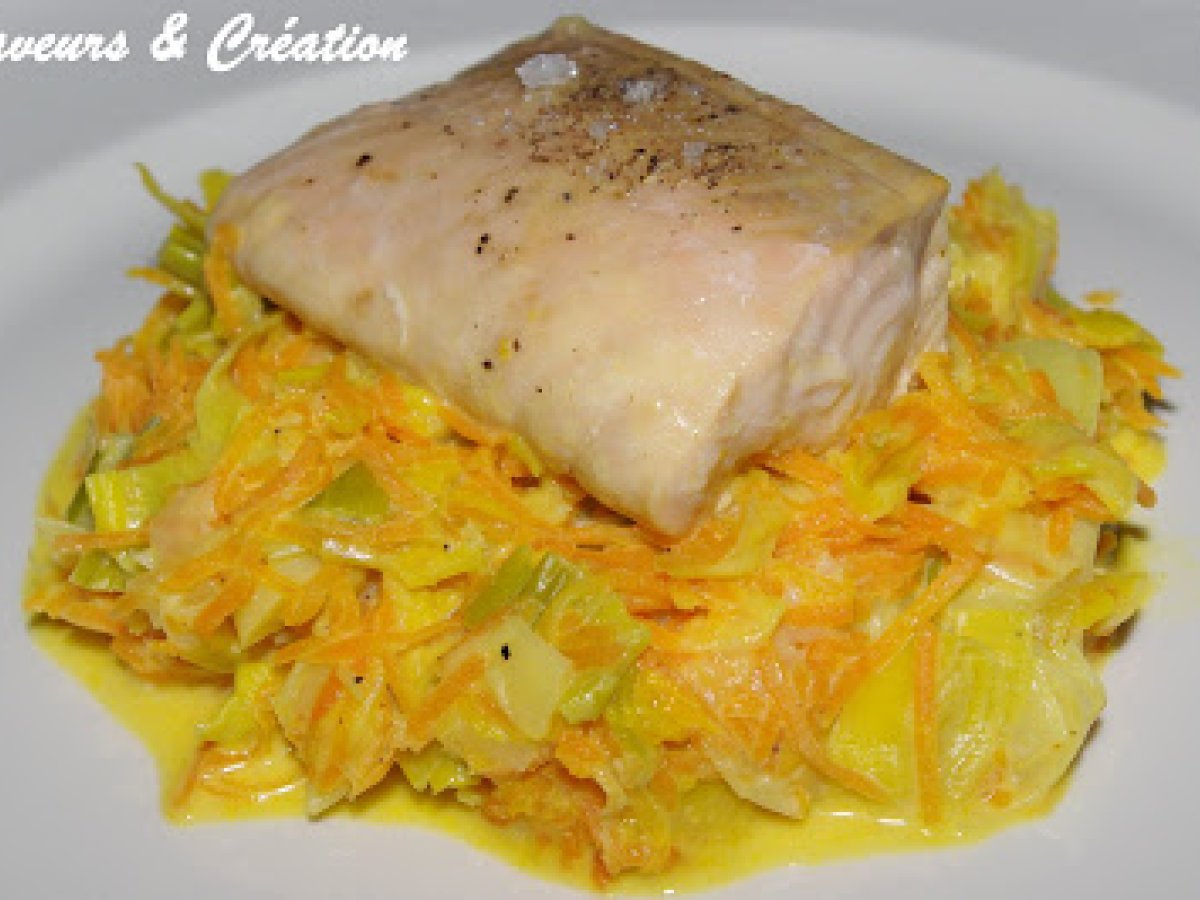 Filet de saumon et fondue de légumes exotique Platfacile35 min Envoyer cette recette à un ami Imprimer cette page Poser une question à l'auteur Publier votre photo de cette recette Ingrédients 3 2 ou 3 pavés de saumon 3 blancs de poireaux- 3 grosses carottes 1 cuillère à café rase de curry en poudre le jus d'une orange 5 cl de crème de coco 5 cl de crème de soja 1 cuillère à soupe d'huile d'olive sel poivre du moulin citron (facultatif - au moment de servir)