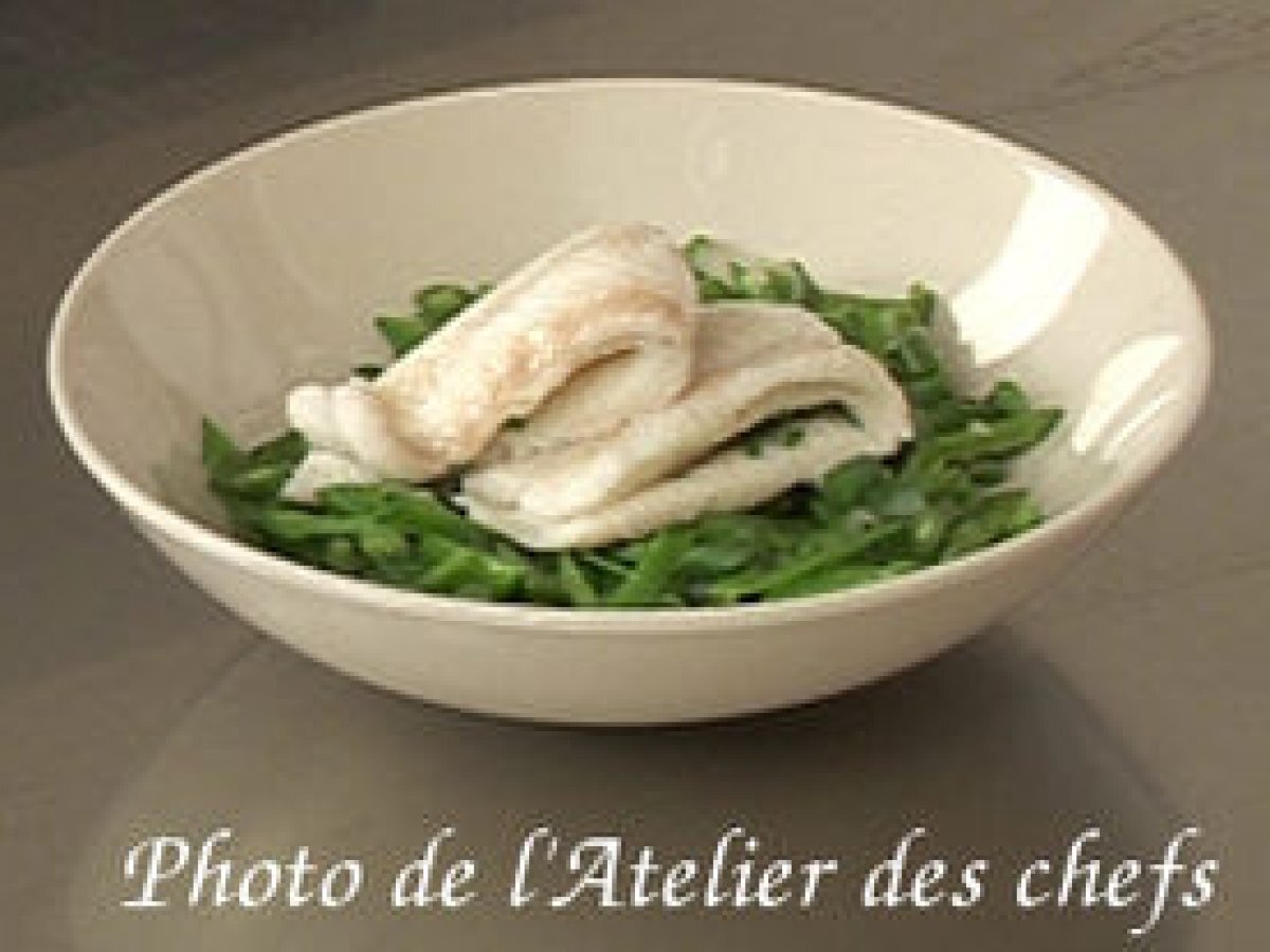 Filet de sole à l'estragon, pois gourmands et haricots verts