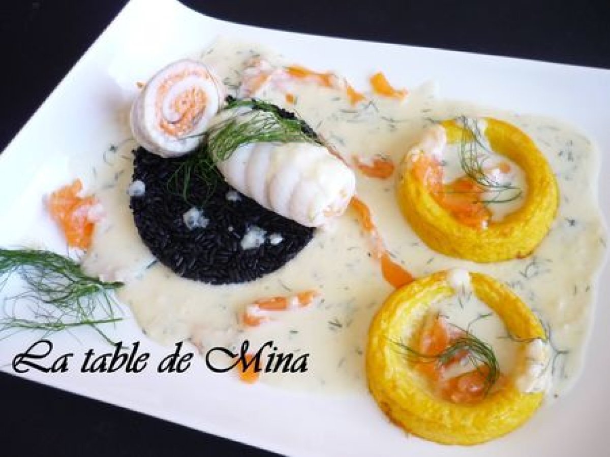 Filet de sole en escargot et son moelleux de potiron votez maintenant Platfacile1 h 5 m600 Kcal Envoyer cette recette à un ami Imprimer cette page Poser une question à l'auteur Publier votre photo de cette recette Ingrédients 4 Pour les moelleux : 60 g de fécule de pommes de terre 150 g de crème fraîche liquide 3 oeufs 430 g de purée de potiron (fait au thermomix) Sel poivre Pour les roulés de poissons : 6 filets de soles 200 g de saumon fumé (de la truite) Pour la sauce : 80 g d'échalotes 1 gousse d'ail 20 g de beurre 80 g de fumet de poissons 100 g de crème fraîche liquide 3 g de maïzena ¼ de botte d'aneth ciselée
