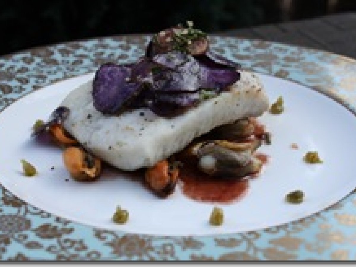 Filet de turbot poché, sauce bordelaise aux agrumes et bonbon de ciboulette Platfacile1 h 30 m Envoyer cette recette à un ami Imprimer cette page Poser une question à l'auteur Publier votre photo de cette recette Ingrédients 4 1 turbot 24 moules 24 palourdes 1 l de vin rouge 2 pomelos 2 oranges 1 botte de ciboulette 50 g de sucre en poudre 25 cl de crème liquide 6 vitelottes 1 bain de friture 20 cl de fumet de poisson huile d'olive beurre sel poivre