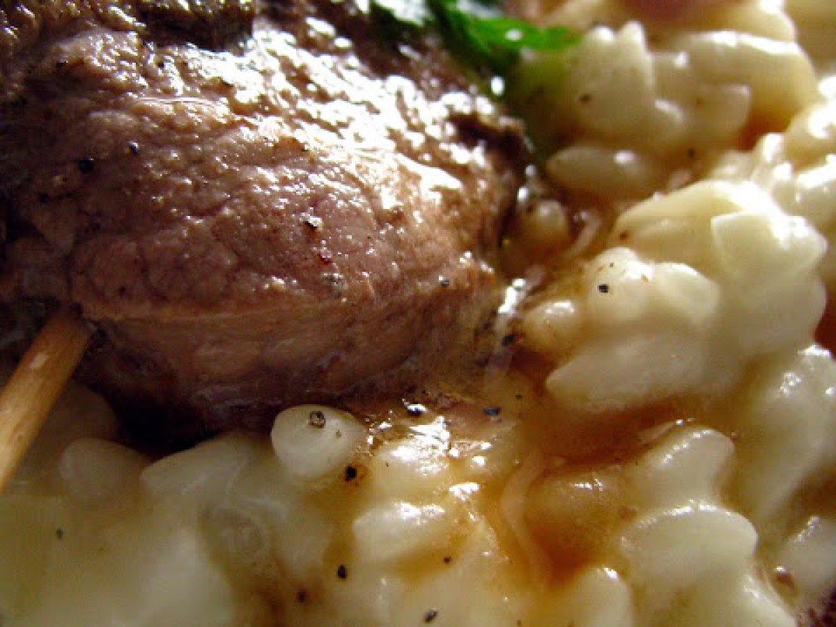 Filet mignon au café, risotto crémeux au jambon fumé de la forêt-noire