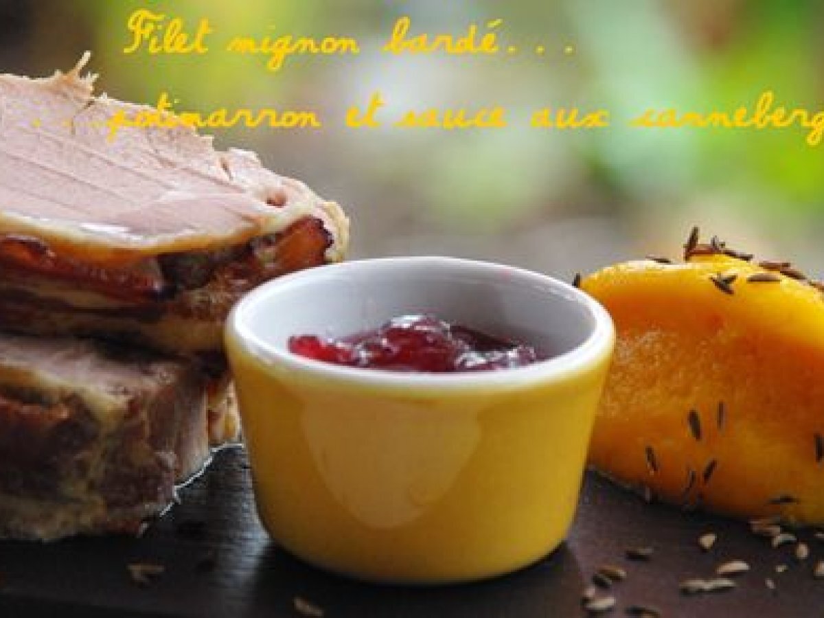 Filet mignon bardé de lard, purée de potimarron et gelée de canneberges