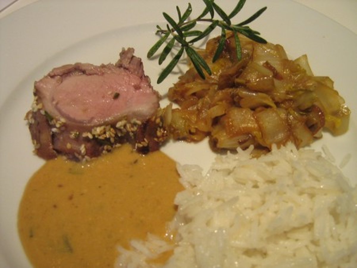 Filet mignon de porc au miel, citron et sésame