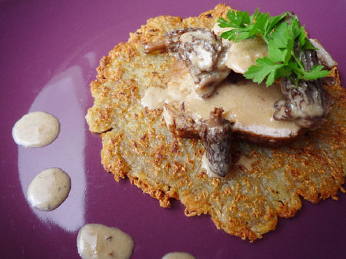 Filet mignon de porc au morilles et pommes darphin votez maintenant PrécédentSuivant Platfacile1 h 30 m546 Kcal Envoyer cette recette à un ami Imprimer cette page Poser une question à l'auteur Publier votre photo de cette recette Ingrédients 4 1 filet mignon de porc (500 g) 2 échalotes 30 g de morilles déshydratés 5 cl de porto 10 cl de crème fraîche liquide 1 c à soupe de farine 6 pommes de terres Sel/poivre Coût estimé: 11.22Euros€ (2.81€/part)