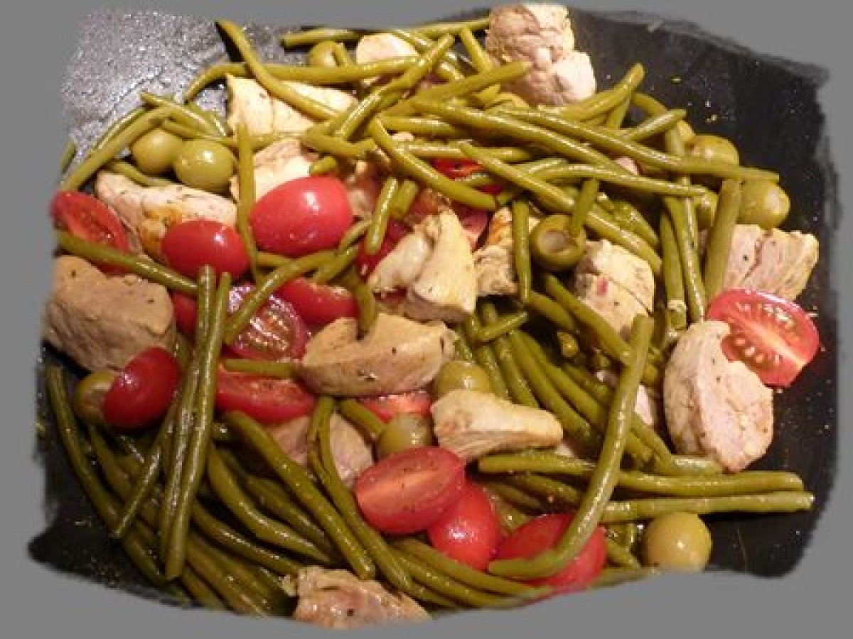 Filet mignon de porc aux olives, haricots verts et tomates PrécédentSuivant Platfacile40 min Envoyer cette recette à un ami Imprimer cette page Poser une question à l'auteur Publier votre photo de cette recette Ingrédients 4 1 filet mignon de porc quelques olives vertes farcies à l'ail une boite de haricots vert des tomates cerises un oignon une gousse d'ail 20 cl de fond de volaille 1 cuillère à soupe de farine 30 cl de vin blanc un peu de sauce WorcestershireWorcestershire sel poivre