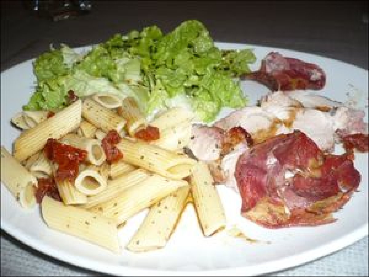 Filet mignon provençal à la coppa et ses pennes aux tomates séchées PrécédentSuivant Platfacile40 min Envoyer cette recette à un ami Imprimer cette page Poser une question à l'auteur Publier votre photo de cette recette Ingrédients 4 1 filet mignon de porc 6 tranches de coppa Huile d'olive Sel poivre Herbes de Provence 500g de penne rigatte cuites 6 tomates séchées coupées en dés Basilic déshydraté De la salade verte Vinaigrette : 1 cuillère à soupe de Viandox 3 cuillères à soupe d'huile d'olive 1 cuillère à soupe de vinaigre