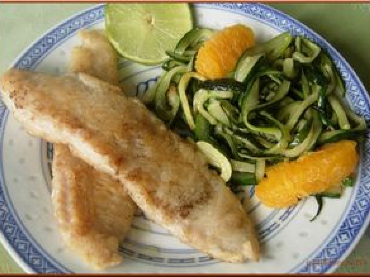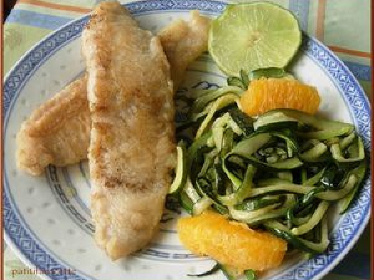 Filets de pangas poêlés et spaguettis de courgettes à l'huile vanillée