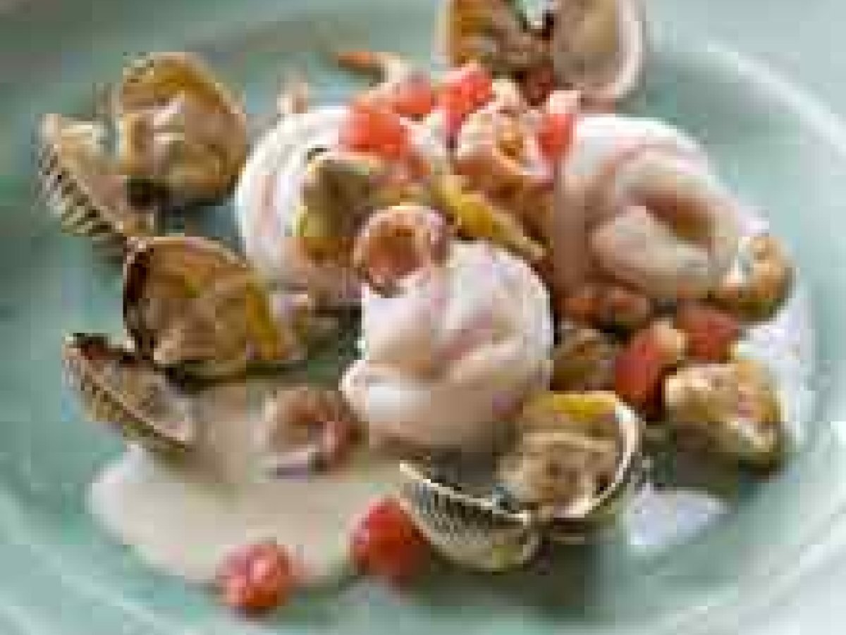 Assaisonnez la sauce avec du sel et du poivre, et éventuellement quelques gouttes de jus de citron, et montez la sauce avec du beurre. - Réchauffez les coques et le poisson dans la sauce, puis partagez le tout sur des assiettes bien chaudes.