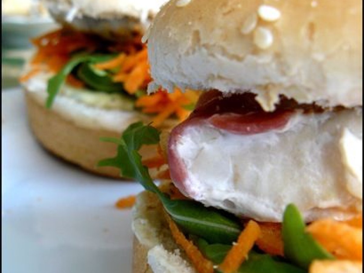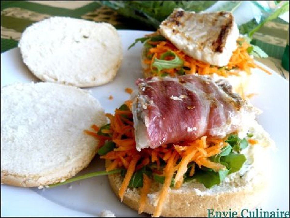 Fish burger carotte râpée-roquette