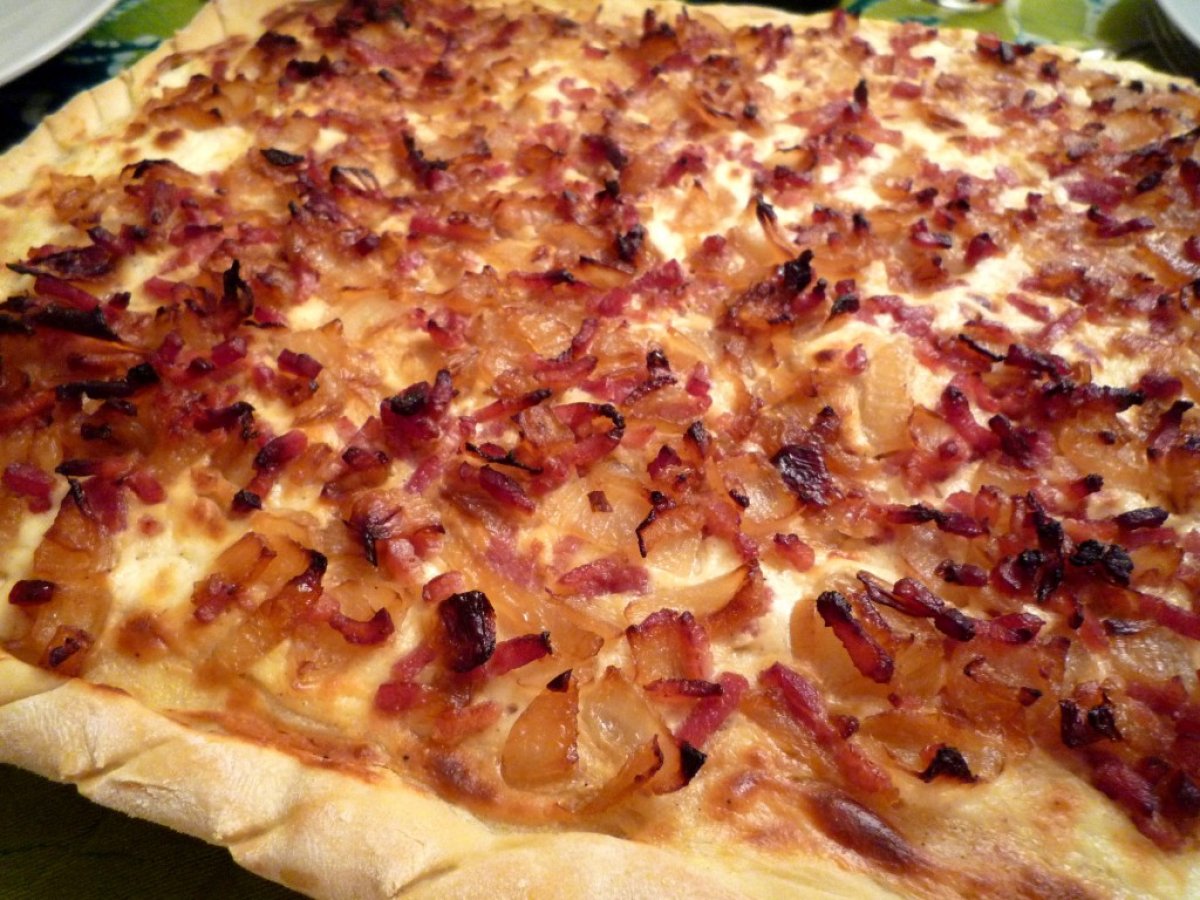 Flammekueche alsacienne Platfacile40 min707 Kcal Envoyer cette recette à un ami Imprimer cette page Poser une question à l'auteur Publier votre photo de cette recette Ingrédients 4 Pour la pâte à flammekueche : 400 g de farine 130 ml d’eau 1 cuillère à café de sel fin 2 cuillères à soupe d’huile d’olive Pour la garniture : 2 oignons émincés 200 g de lardons fumés 300 g de fromage blanc 100 g de crème fraîche 1 pincée de noix de muscade moulue sel et poivre Coût estimé: 4.09Euros€ (1.02€/part)