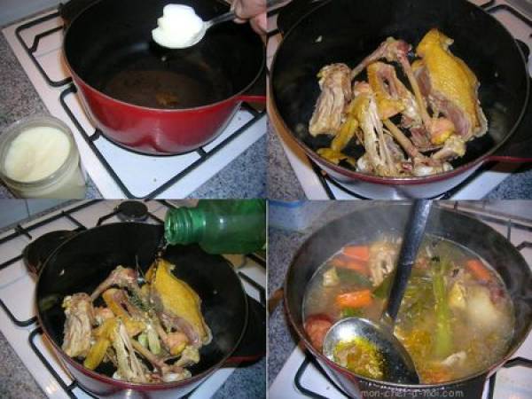Fonds et glace de volaille votez maintenant PrécédentSuivant Platfacile1 h 30 m366 Kcal Envoyer cette recette à un ami Imprimer cette page Poser une question à l'auteur Publier votre photo de cette recette Ingrédients 4 Pour 1 L de fond blanc de volaille: 1 carcasse de poulet 1 cuillère à café de graisse 1/2 verre de vin blanc 2 carottes 1 poireau 1 branche de céleri 1 oignon 1 gousse d'ail 1 bouquet garni sel, poivre en grain 2 clous de girofle Coût estimé: 5.88Euros€ (1.47€/part)