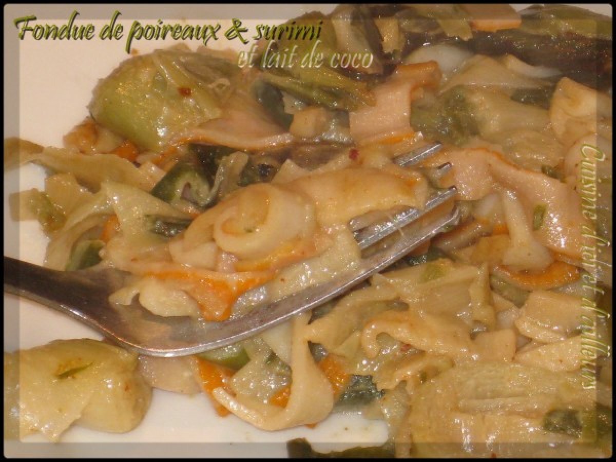 Fondue de poireaux et surimi au lait de coco votez maintenant PrécédentSuivant Platfacile15 min194 Kcal Envoyer cette recette à un ami Imprimer cette page Poser une question à l'auteur Publier votre photo de cette recette Ingrédients 2 3 poireaux une dizaine de bâtonnets de surimi une briquette de lait de coco gingembre en poudre sauce soja poivre