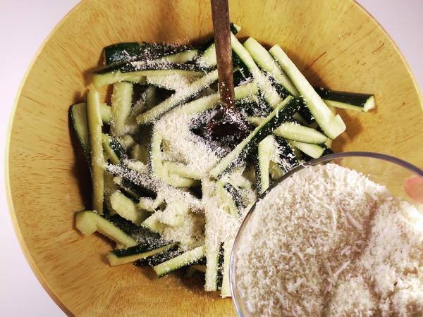 Frites de courgettes light au four (amande-parmesan)