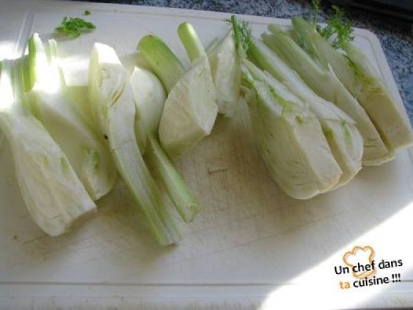 Éplucher, laver le fenouil, le couper en morceaux, retirer le trognon.