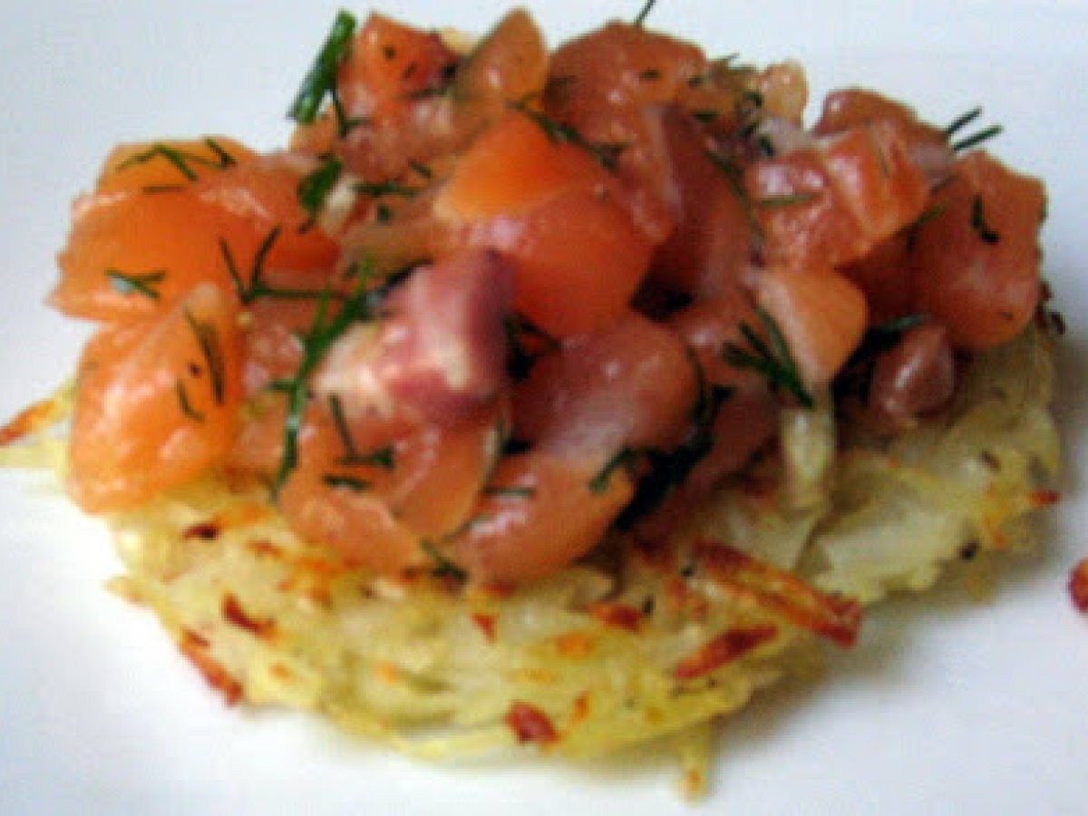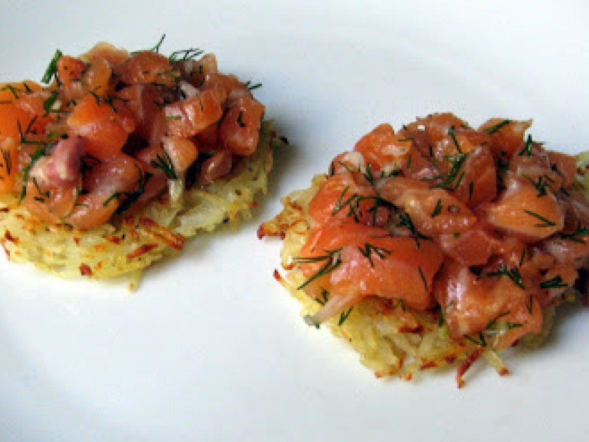 Galette de pommes de terre au tartare de saumon - nordische röstis oder reibekuchen