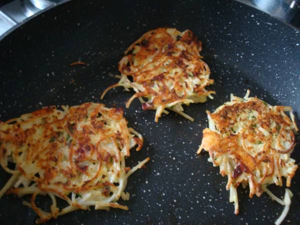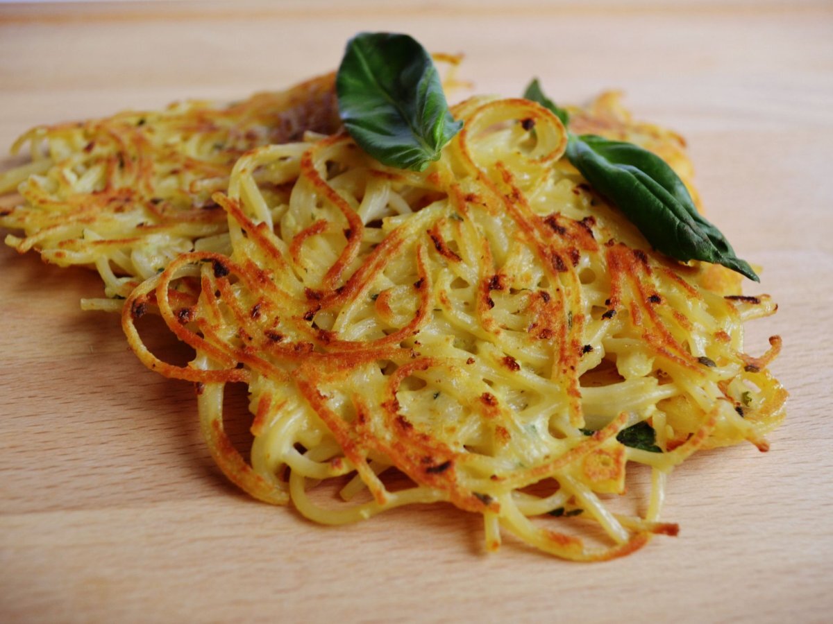 Galette de spaghettis croquants au basilic