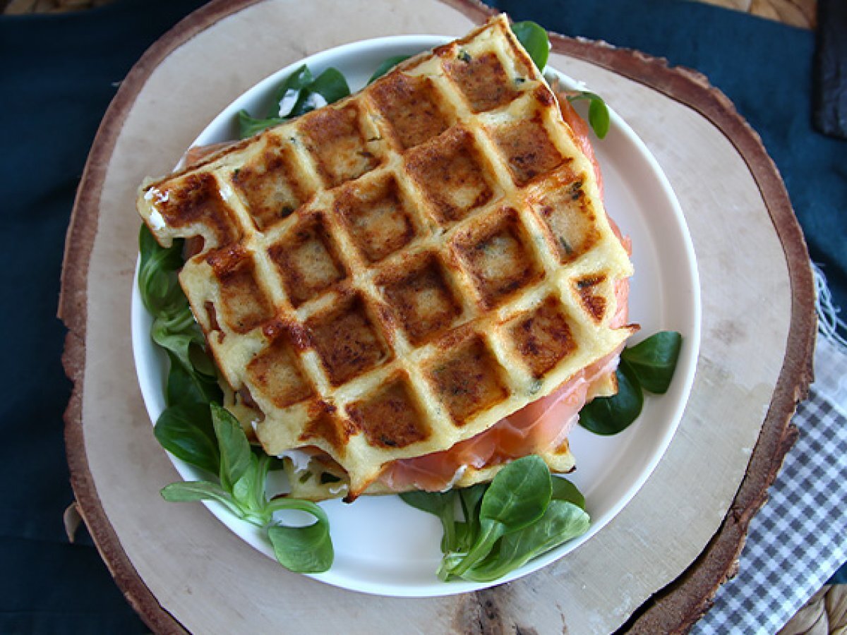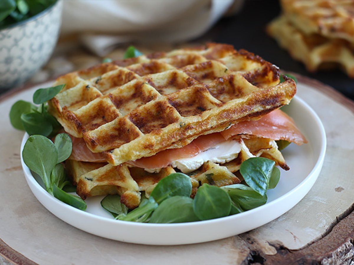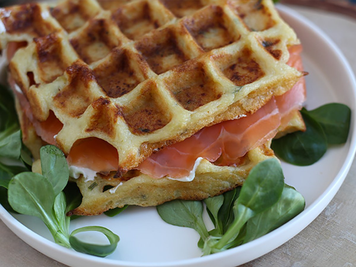 • Gaufres de pommes de terre - Sandwich de gaufres au saumon fumé et au fromage frais - Préparation etape 5Vos gaufres sont prêtes !