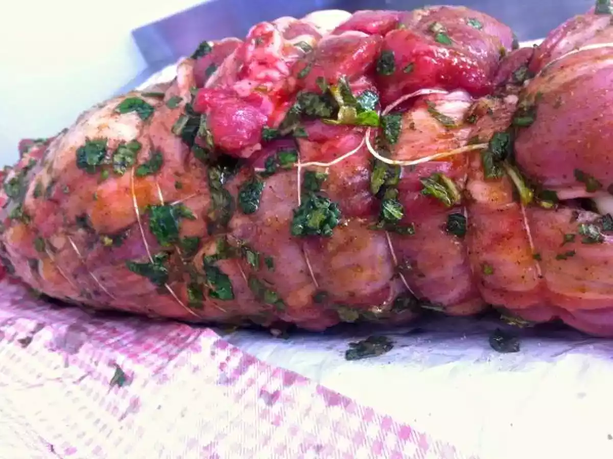 J'ai choisi le tournebroche pour avoir une viande très tendre et bien dorée partout. Et le résultat était merveilleux...J'ai choisie de prendre la recette de famille pour l'assaisonner : cumin/menthe/miel. Un agneau au parfum d'orient qui embaume toute la maison de son odeur exquise. J'arrete de parler, place à la recette :