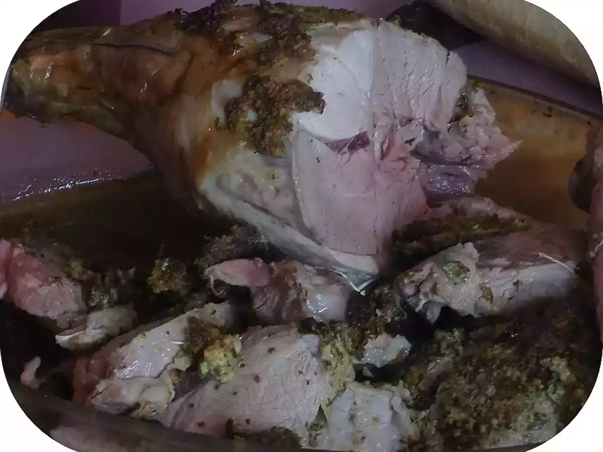 Gigot d'agneau en croûte de moutarde, herbes & parmesan Platmoyen2 h 10 m234 Kcal Envoyer cette recette à un ami Imprimer cette page Poser une question à l'auteur Publier votre photo de cette recette Ingrédients 8 1 gigot d'agneau (penser à demander le temps de cuisson exacte à votre boucher) 40g de parmesan à raper 5 càs généreuse de moutarde fine et forte 1 botte de persil plat 15 brins de ciboulette, fraîche ou surgelée 1 càs de coriandre fraîche ou séchée 1 càs d'estragon 20g de chapelure ou de pain rassi réduit en poudre 2 gousses d'ail