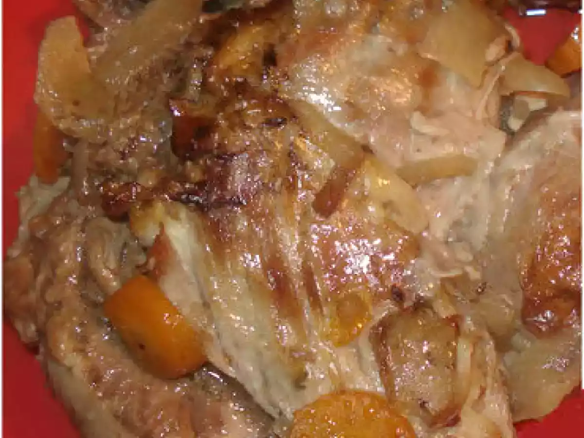- Donc dans une cocotte mettre l'épaule ou le gigot avec deux carottes coupées en rondelle, quelques grains de poivre, laurier, thym, quelques gousses d'ail en chemise.