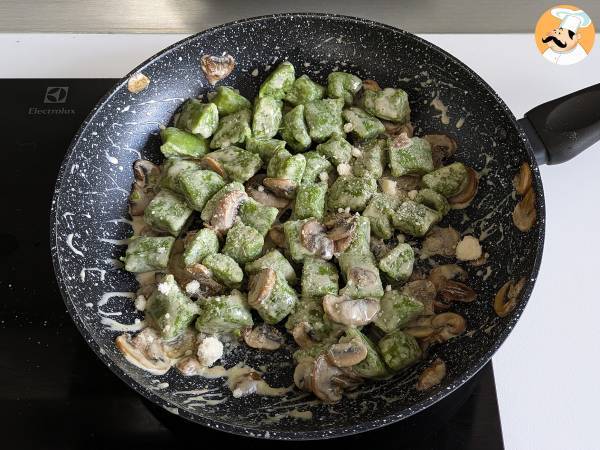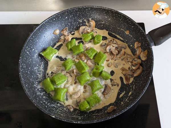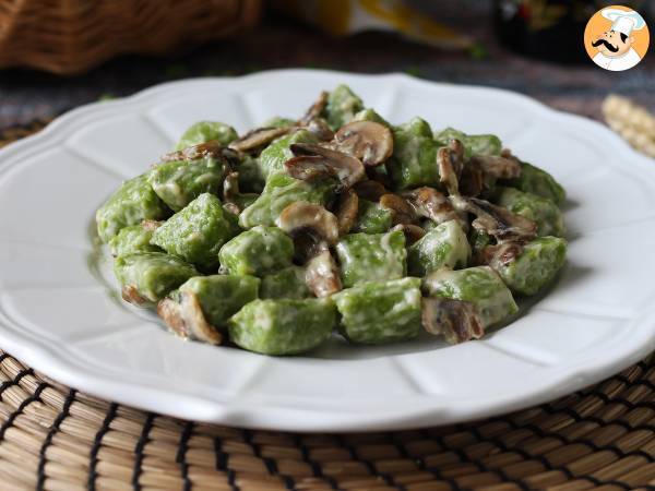 Envie de changer des gnocchi classiques aux pommes de terre? Laissez-vous tenter par ces gnocchi de petits pois à la sauce aux champignons! Une variante originale et colorée, parfaite pour faire aimer ce légume vert aux enfants. Faciles à préparer, ces gnocchi maison apportent une touche de fraîcheur à votre assiette, tout en restant super gourmands. Parfait pour impressionner vos invités ou simplement vous régaler avec un plat végétarien qui sort de l'ordinaire! :-)