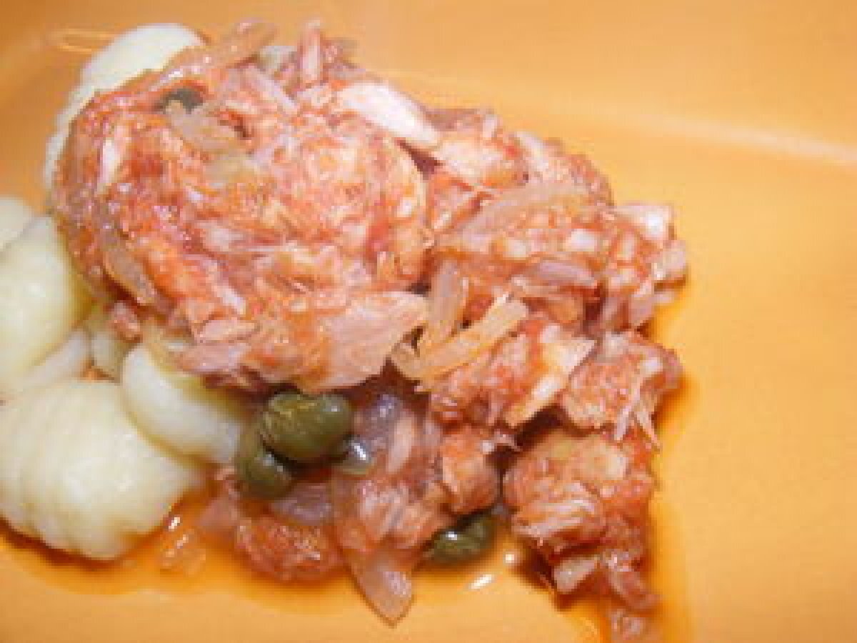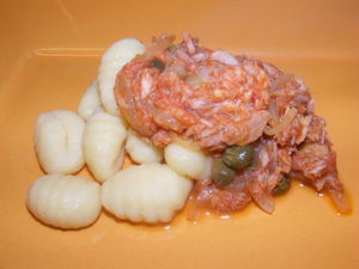 Gnocchis au thon votez maintenant PrécédentSuivant Platfacile15 min Envoyer cette recette à un ami Imprimer cette page Poser une question à l'auteur Publier votre photo de cette recette Ingrédients 4 1 paquet de gnocchis de pommes de terre 2 boites de thon au naturel 1 brique de purée de tomates 2 cuillères à soupe de câpres 1 oignon parmesan sel poivre 2 cuillères à soupe d'huiles d'olive herbes de provence 1 sucre