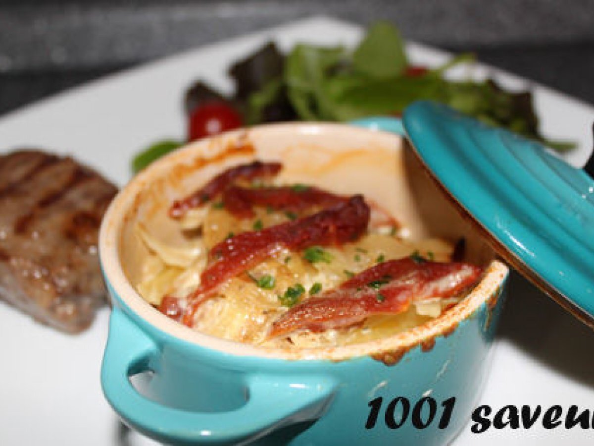 Gratin boulangère à la façon d'alain ducasse votez maintenant PrécédentSuivant Platfacile1 heure414 Kcal Envoyer cette recette à un ami Imprimer cette page Poser une question à l'auteur Publier votre photo de cette recette Ingrédients 8 3 oignons 1 kg de pommes de terre 20 tomates séchées 35 cl de bouillon de poulet 35 cl de crème liquide entière 50 g de beurre sel poivre du moulin Coût estimé: 7.06Euros€ (0.88€/part)