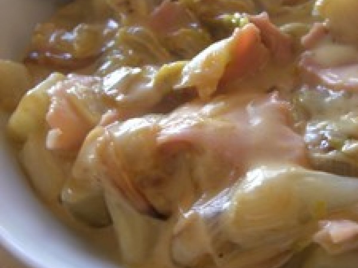 Gratin d'endives au jambon et curry PrécédentSuivant Platfacile17 min316 Kcal Envoyer cette recette à un ami Imprimer cette page Poser une question à l'auteur Publier votre photo de cette recette Une saveur chaude qui change, pour le repas du soir. Ingrédients 2 4 belles endives 2 tranches de jambon 2 échalotes 4 cuillères à soupe de crème fraîche 1 cuillère à café de curry gruyère râpé Coût estimé: 3.96Euros€ (1.98€/part)