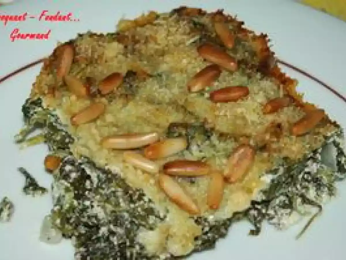 Gratin d'épinards Platfacile42 min278 Kcal Envoyer cette recette à un ami Imprimer cette page Poser une question à l'auteur Publier votre photo de cette recette Ingrédients 6 700 g d'épinards en branches huile d'olive 1 oignon 1 cuillère à soupe d'aneth ciselée 200 g de feta 240 g de yaourt de brebis 2 oeufs 50 g de parmesan râpé 1 cuillère à soupe de chapelure 25 g de pignons muscade sel poivre du moulin Coût estimé: 7.85Euros€ (1.31€/part)